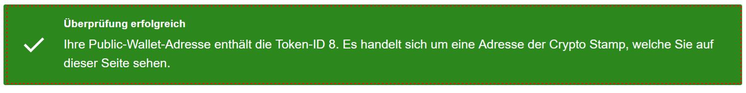 Ist die Prüfung des NFT's positiv, sehen Sie folgende Anzeige: