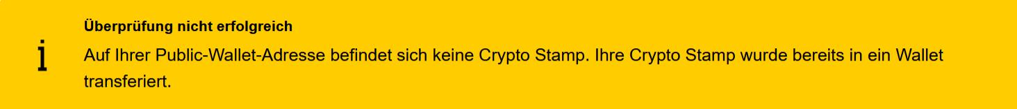 Ist die Prüfung des NFT's negativ, sehen Sie diese Anzeige: