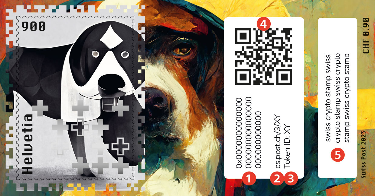 Durch Scannen des QR-Codes wird aufgezeigt, welche der 13 digitalen Versionen vorliegt. Zudem wird ersichtlich, ob das NFT auf dem originalen Wallet (dem Paper Wallet, in diesem Fall der Briefmarke selbst) noch vorhanden ist oder schon in ein digitales Wallet transferiert wurde. - 5 Mnemonic phrase