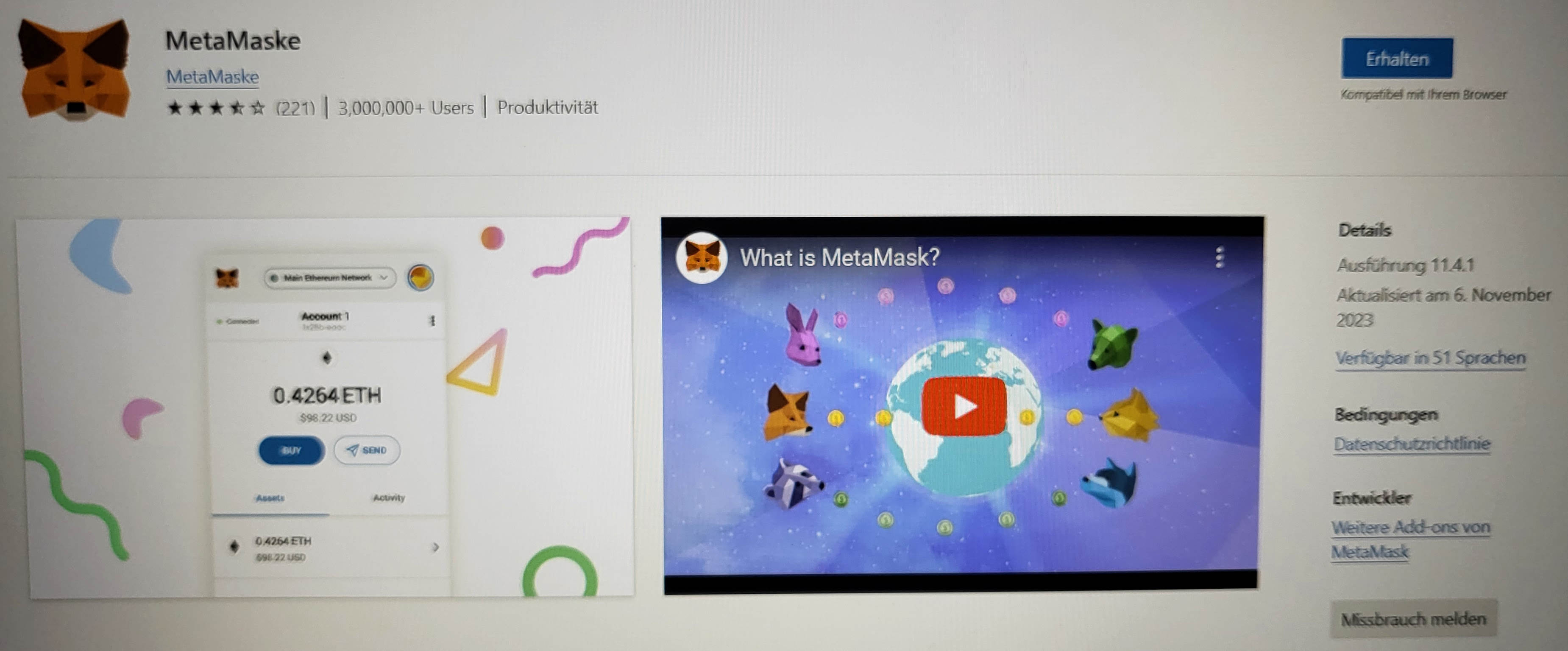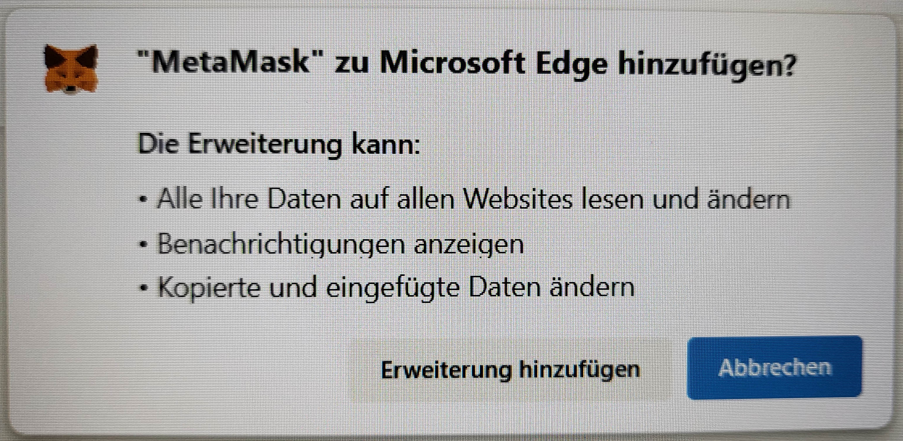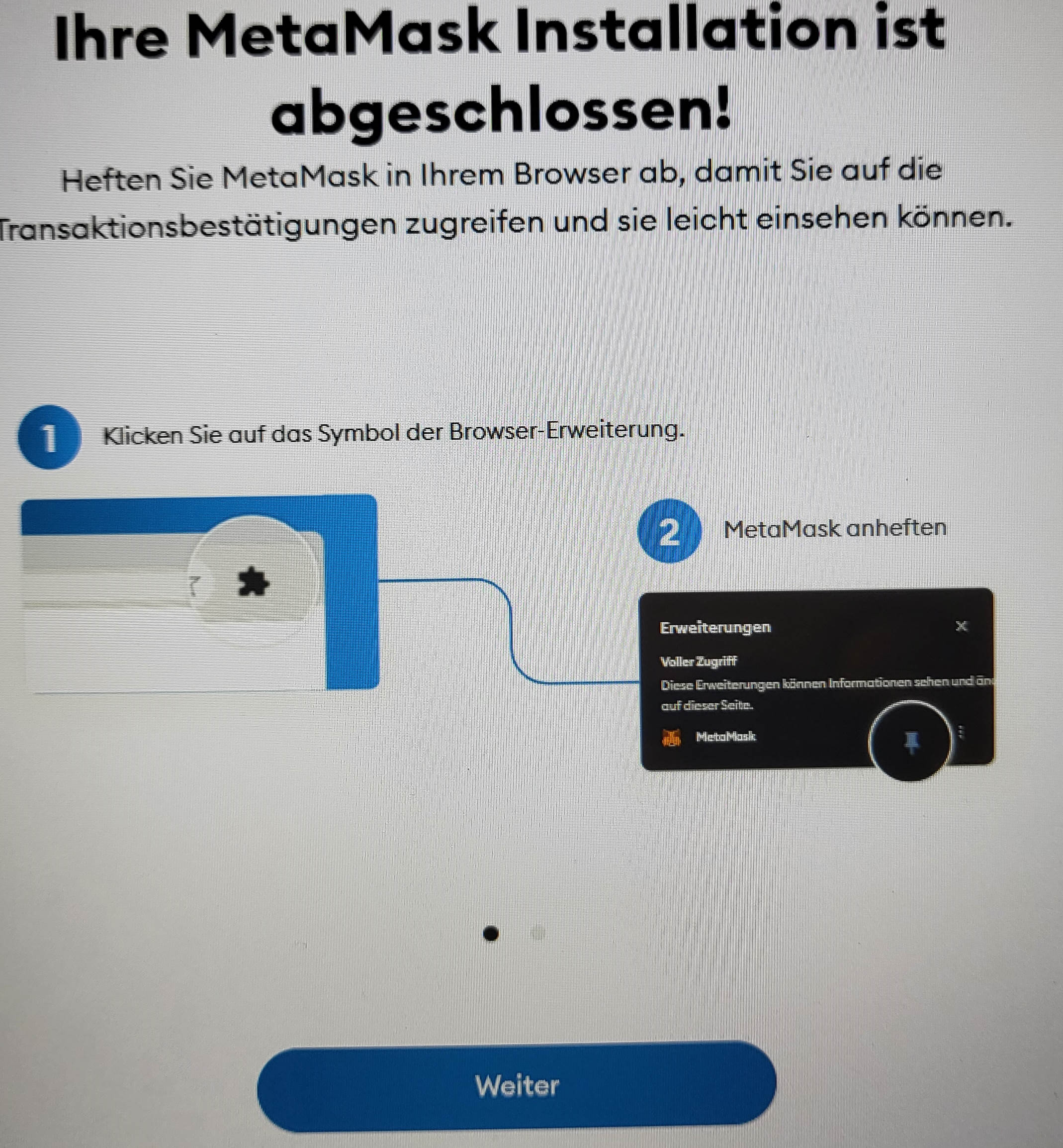 Anschliessend das Programm installieren, wie von MetaMask vorgegeben.
