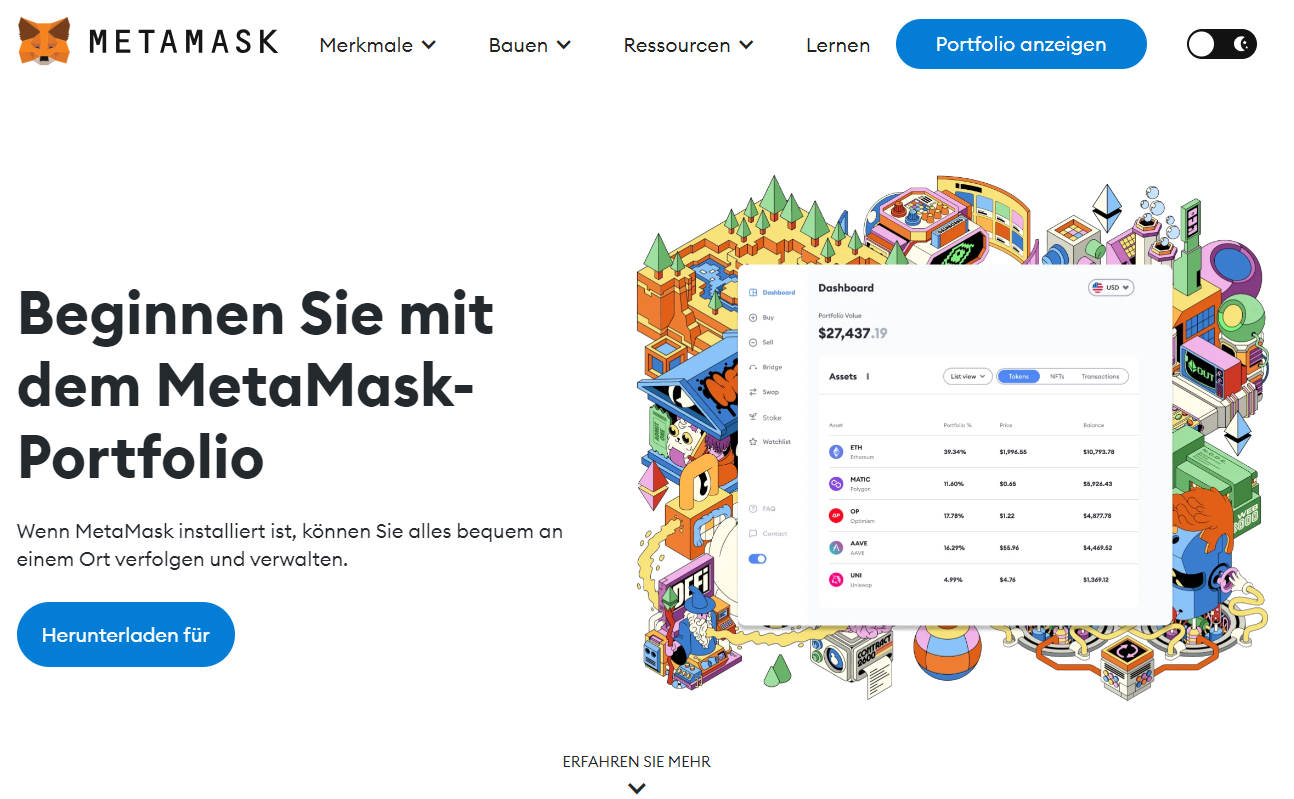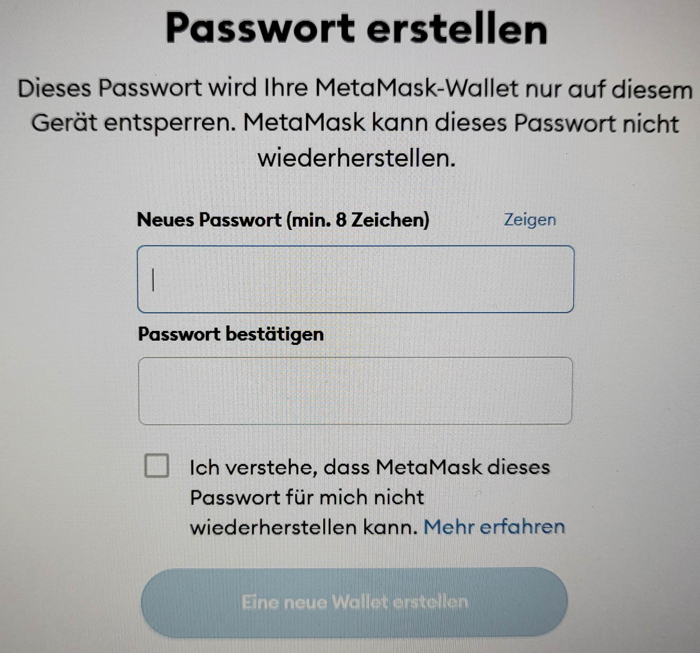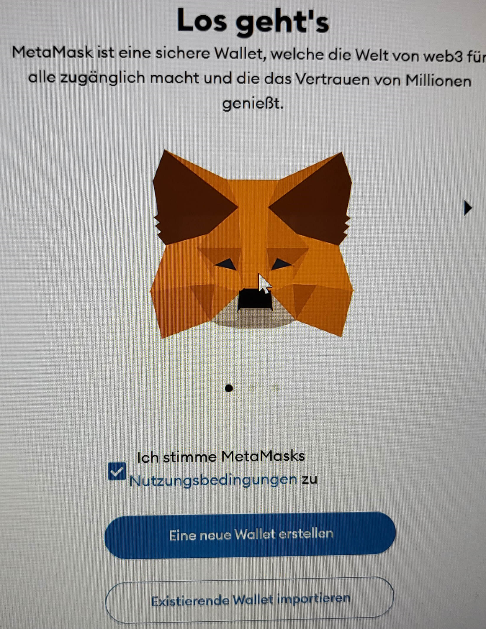 Um das Wallet einzurichten, müssen Sie sich bei MetaMask anmelden. MetaMask