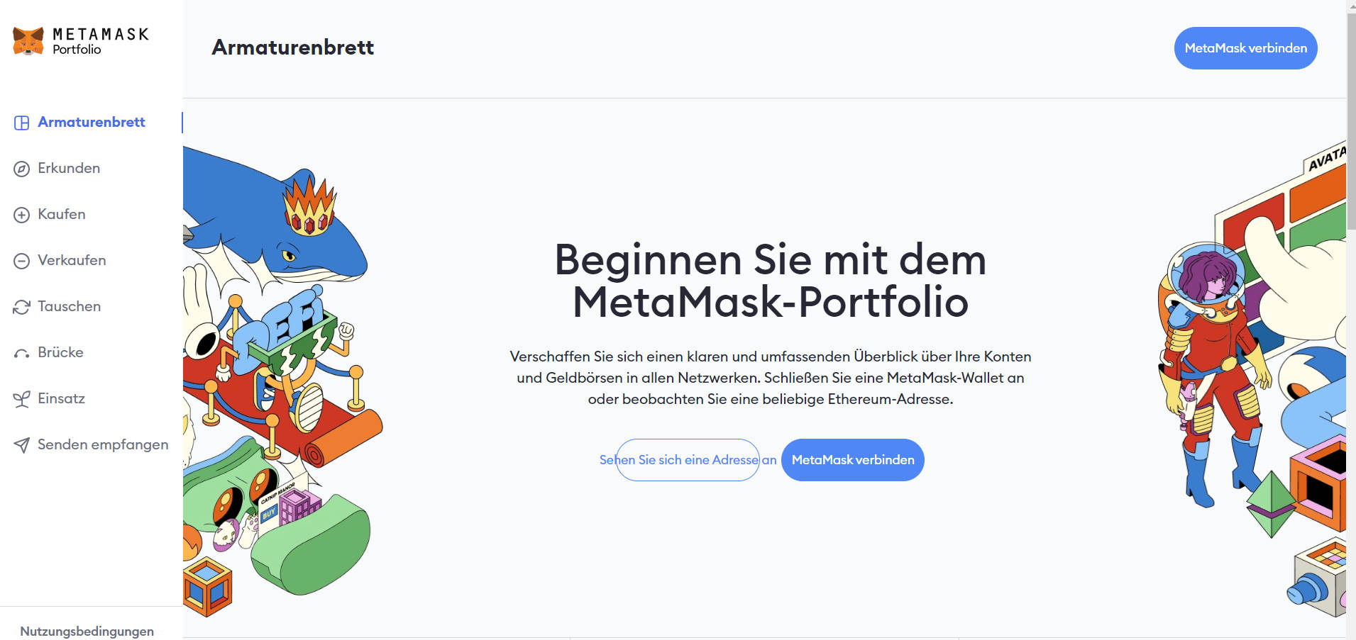 Anschliessend drücken Sie den Knopf "MetaMask verbinden"