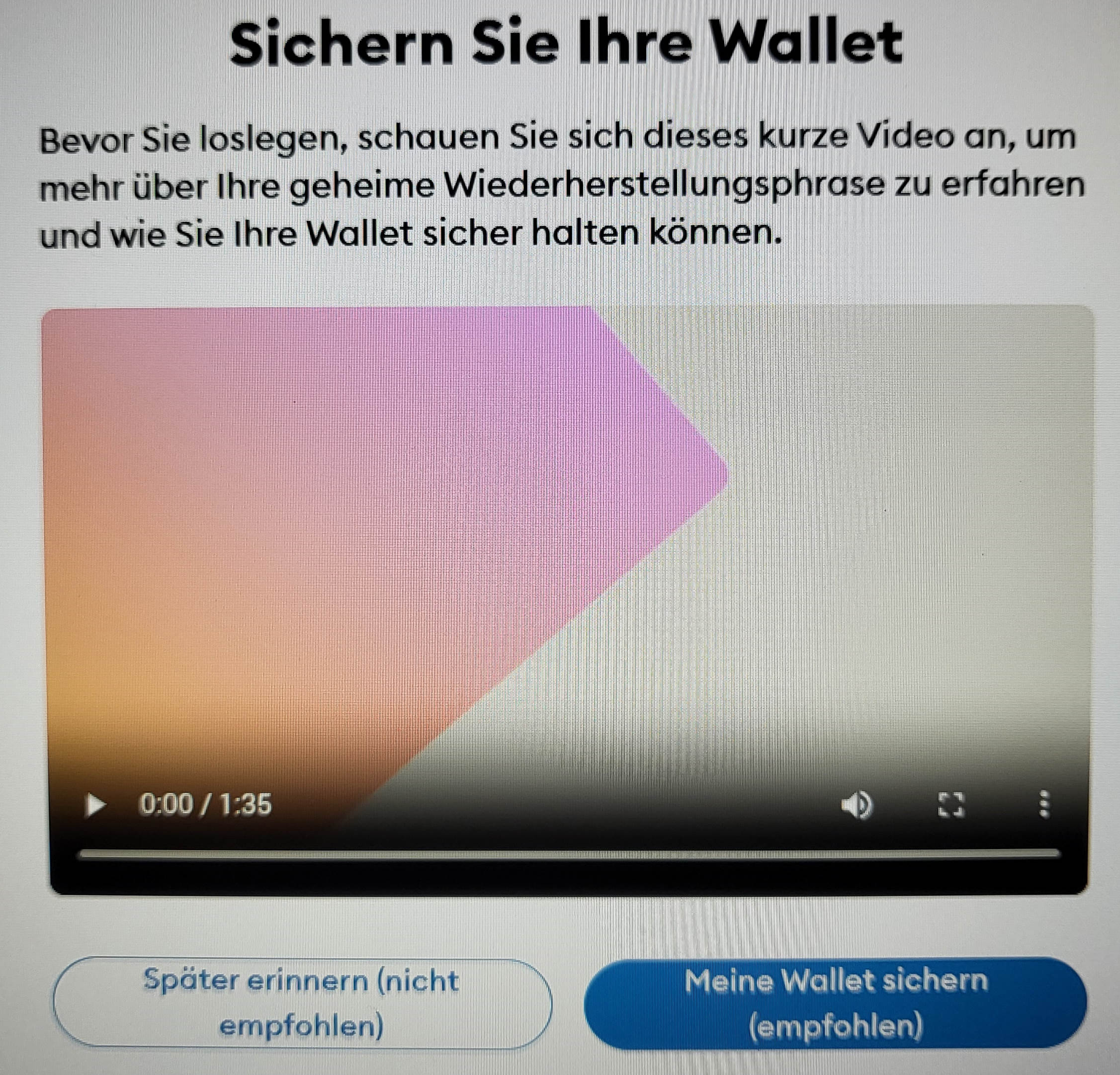 Es öffnet sich wieder ein neues Fenster. Bitte lesen anschliessend " Geheime Wiederherstellungsphrase offenlegen " drücken.